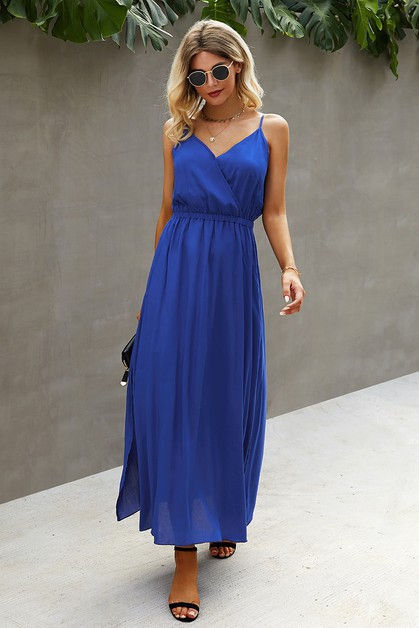Deep V Neck Belt Long Dress